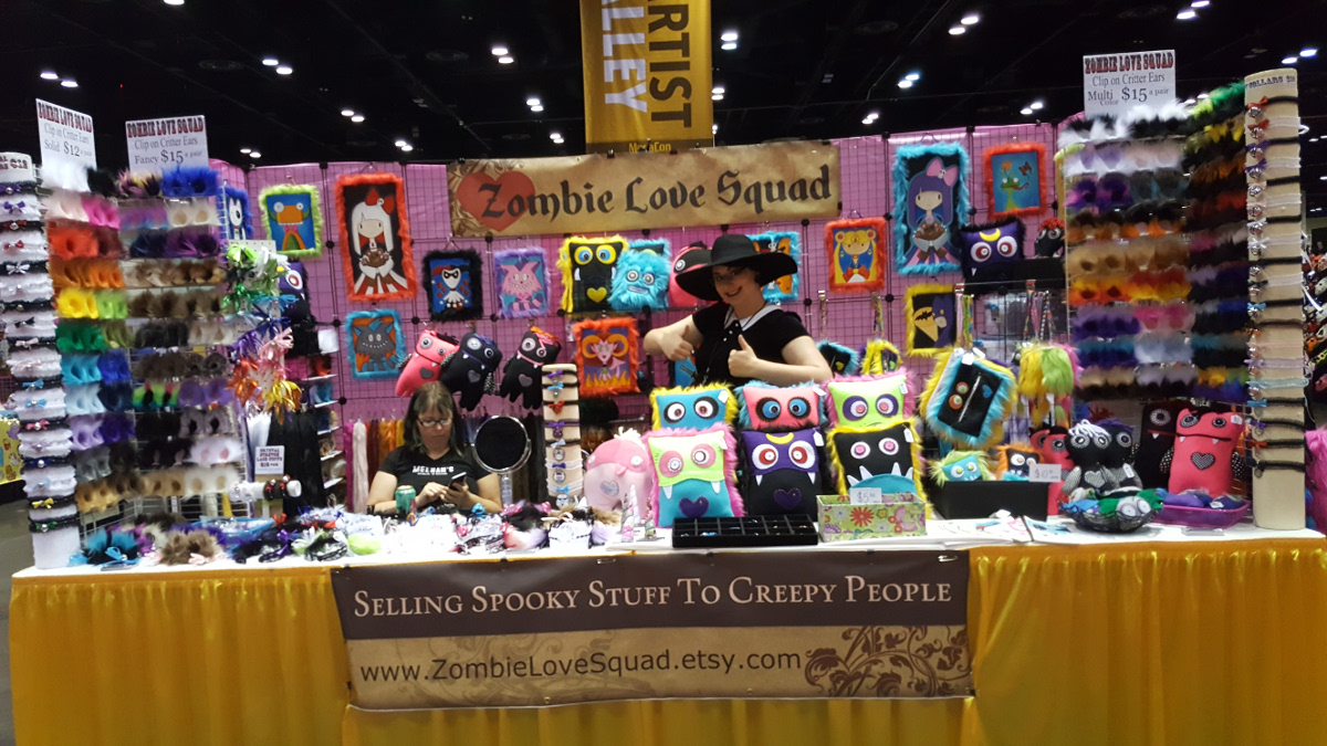 In the market for an adorable monster pillow? Looking for cat ears and a tail to complete your anime cosplay? Zombie Love Squad has you covered. Yeah, I didn’t see any zombies either but I was too busy squeeing over the pillows.