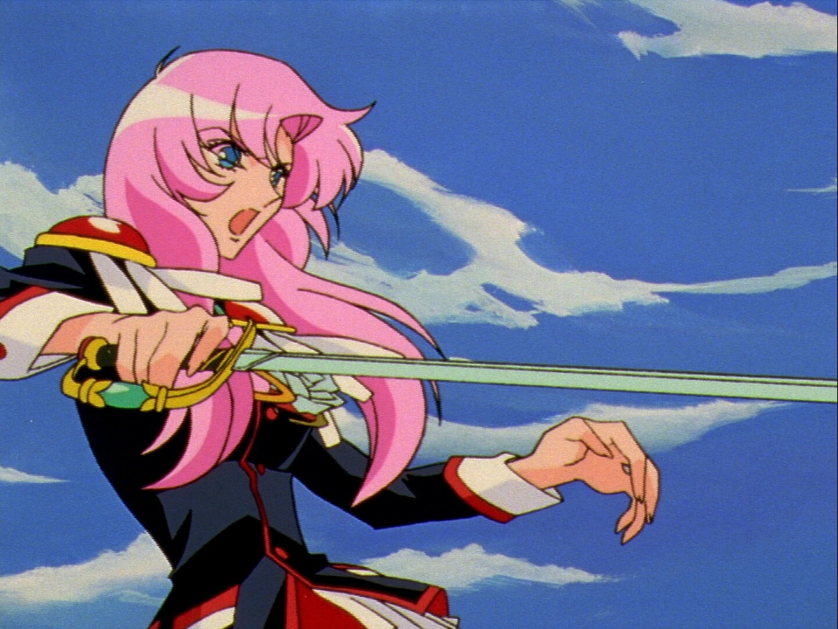 It has been a while since I’d seen ‘Escaflowne’ so it took a second to realize who the guy with the sky blue hair cybernetic right arm prosthetic was. The pierced ear and a purple tear drop shaped tattoo under his right eye seemed familiar coupled with the high-collared cloak worn wrapped close to cover his mechanical arm.