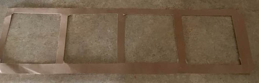 For the square image, make a square border template, with the inner edge slightly smaller than the image. Draw the outer edge about a half-inch wider than the inner edge, and cut it out. Trace it onto the construction paper three or four times so the edges are lined. Make sure there is a visible line between each square, as you’ll need it for folding later. At the end of the last image, draw a small tapered flap.
