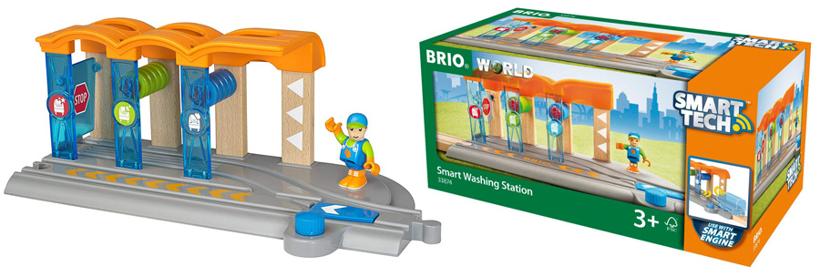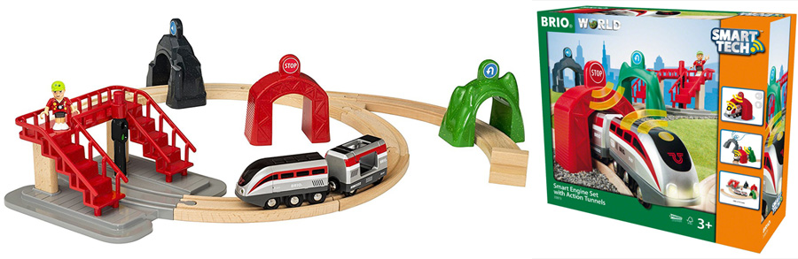 Controlled using RFID built into the pieces, Brio Smart Tech is an intelligent train system that makes toy trains appear to control themselves. There are multiple sets available now including a Washing Station and extra Action Tunnels, but all require the Smart Engine Set with Action Tunnels to work. This base set contains