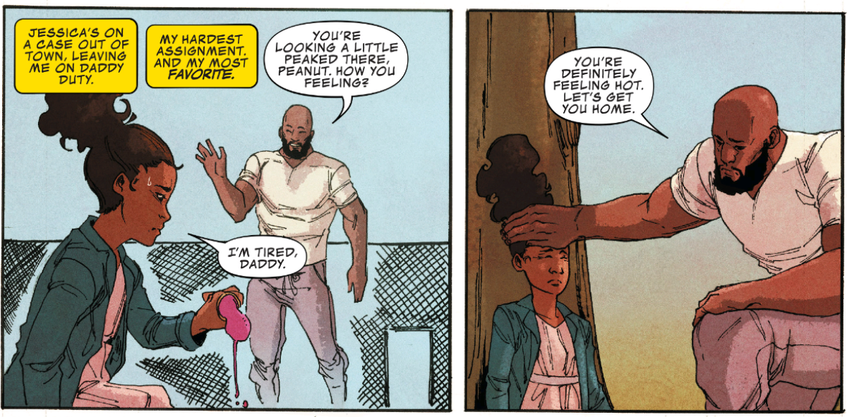 Luke Cage and Jessica Jones are running concurrently, but there’s not a ton of crossover (at least in their first issues). They’re both present in each other’s stories in the way that married couples are always kind of present in each other’s lives, but the stories diverge in important ways. Working on both titles, do you find yourself wanting to push for Kelly Thompson and Anthony Del Col to share story ideas and play off each other, or are you more making sure they aren’t directly contradicting each other? How do you keep the titles consistent?