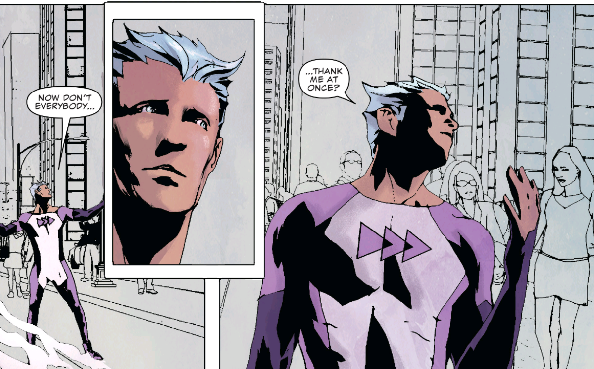 Looking back at my old files, Wasp 1 had a pretty long gestation period—we got the first pitch from Jeremy in June 2016, and the first issue came out in January 2017. We’re not usually lucky enough to have so much lead time—it meant Elsa and Megan could both get cleanly through a full arc without interruption, and it also meant print-week production ran really smoothly. We don’t usually get that lucky! For instance, we really had to hit the ground running (so to speak) on Quicksilver: No Surrender because it had to launch right after Avengers: No Surrender. But we got it done!