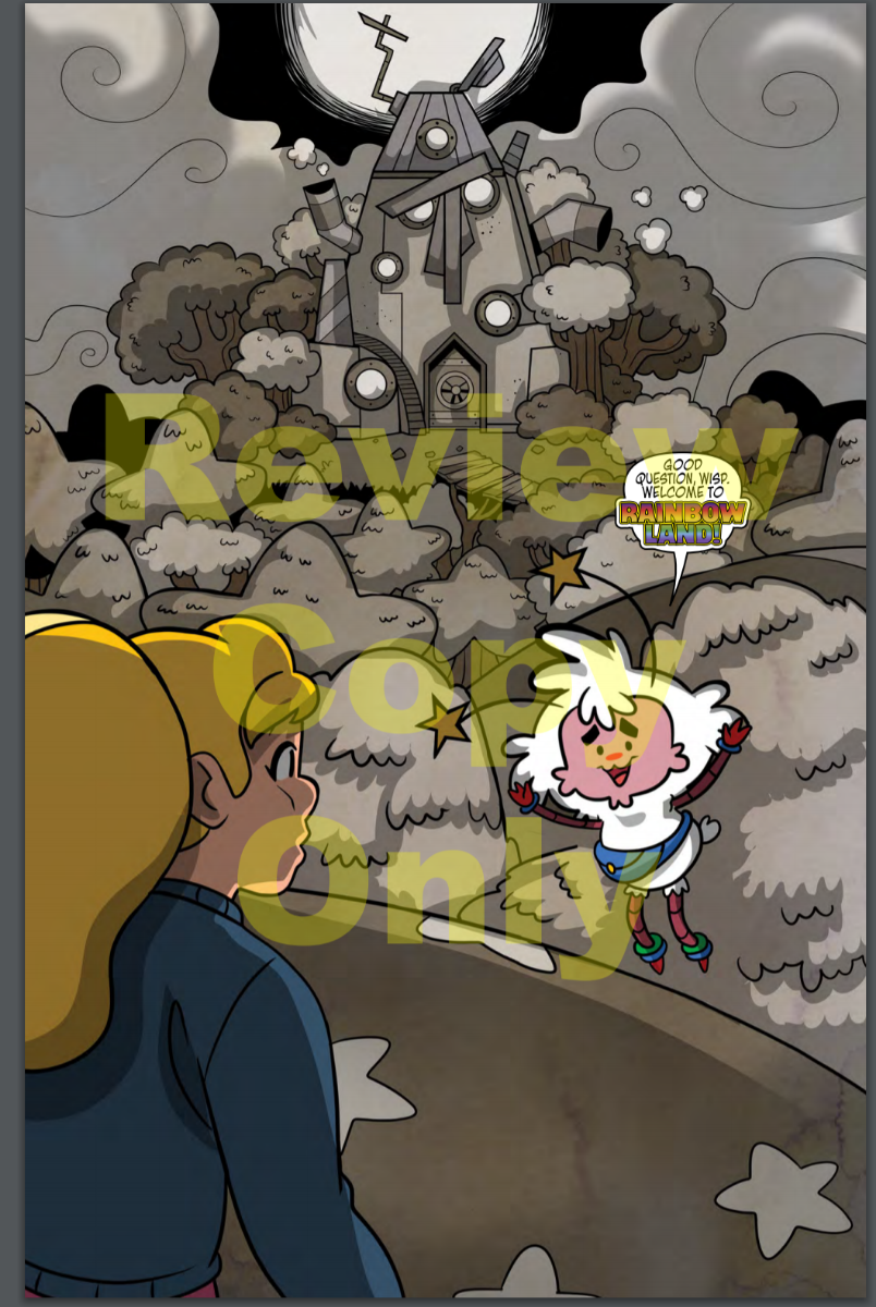 We know so much about Wisp before she gets to Rainbow Land, which allows for what I think may be the ultimate female escapist fantasy – not becoming some sort of superhero in our world, but being whisked away from the real world, to a place where people see that we’re special. There are plenty of stories that start with a female heroine in a fantasy world, and she gets to kick ass there, but the daydream of being plain us in our world and then a magical heroine in another world… that’s something else all together. For me, a kid who used to look for the way to get to Ponyland every time I saw a rainbow, it’s something incredibly, well, magical.