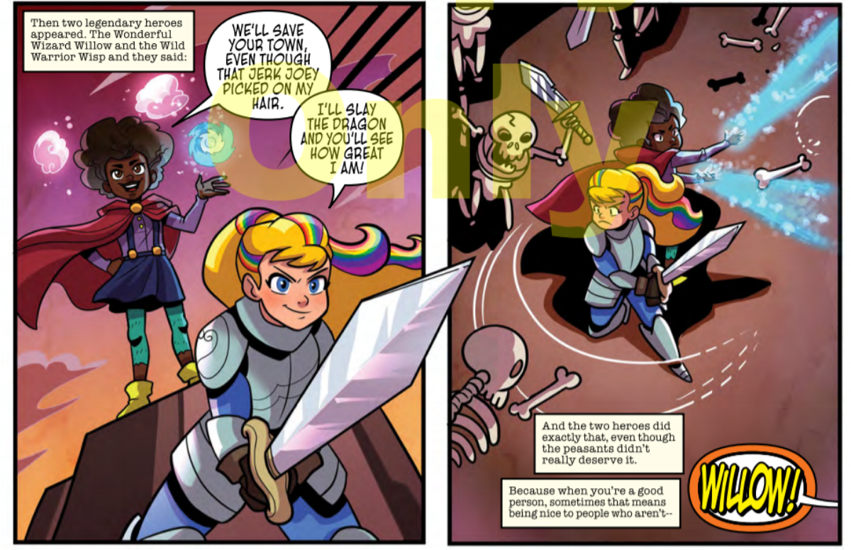The art in this comic practically deserves an article all on its own. In Goldie Vance, I loved the way Brittney Williams kept bodies, especially girl bodies, softly rounded in ways that made them feel appropriately young and real. In Rainbow Brite, that’s even more apparent. Willow and Wisp are young, and they have little girl bodies. Their expressions are big and clear without ever being caricatures. The backgrounds are created with easy flourishes that give just enough detail, keeping it from overwhelming the target audience. The panels are readable for almost any age group, with little in the way of complicated layouts – this comic is made for little girls, and little girls can read this. I’m quite certain they will.