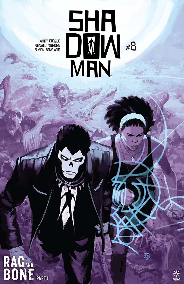 The endless cycle of death and rebirth stops here as Shadowman and the Darque clan usher in the reckoning they’ve waited ten lifetimes to achieve—with massive repercussions for the future of the Valiant Universe—as renowned writer Andy Diggle (Green Arrow: Year One) and high-octane artist Renato Guedes (Action Comics) return to heed the call of RAG AND BONE!” ~Source Valiant Comics