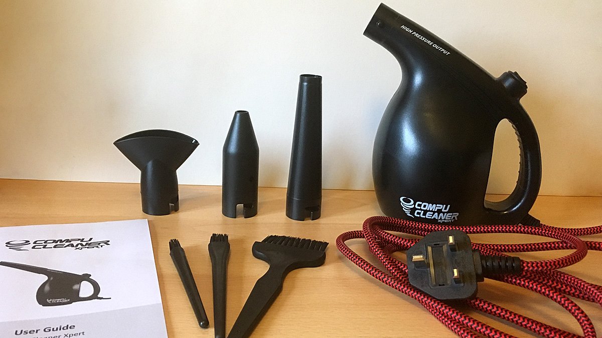 The CompuCleaner is a compact, mains-powered air duster. Although designed for cleaning the insides of computers, it can be used to clean out any and all electronics and is also useful for cleaning intricate or delicate objects that a traditional duster might damage.