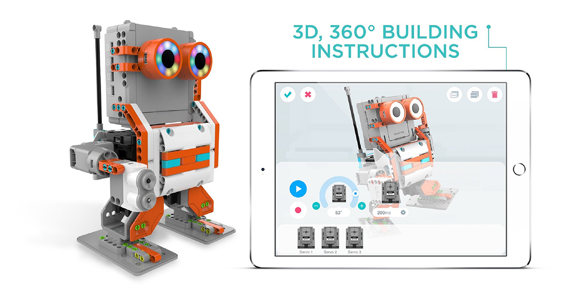 This kit is made of 384 snap-together components. This is key because it means that the kids can simply get right to work on it with no special tools required. Included is a selection of LED lights, Bluetooth speakers, and digital servos to help with movement. To ensure that any child can build something fun right out of the box, Astrobot Series Cosmos Kit includes instructions for 3 different configurations in their app. This allows you to view each step with a 360-degree view of the model, allowing even the most spatially challenged of us to follow along.