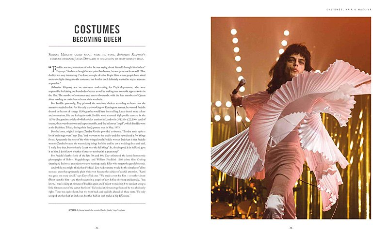 There’s plenty of other information to support all those images too. There’s an interview with Rami Malek and forwards penned by Brian May and Roger Taylor – Roger’s baring his characteristic cheek in just two words. There are also profiles of all the major cast members including not only the actors portraying Queen members but also those playing supporting roles like Mary Austin, Jim Beach, and Paul Prenter. The costumes chapter naturally focuses on Freddie, yet the others are not excluded because, in order to accurately recreate the band for the big screen, everyone had to be styled and costumed perfectly.