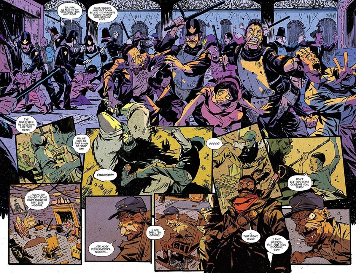 Bitter Root #3 shows us how powerful the cycle of hate and fear truly is. Hate and fear causes and is caused by situations like what we see happening in Harlem, which bears some striking similarity to events that were occurring historically about that same time. It is this hate and fear that creates monsters. It also feeds them creating more monsters.