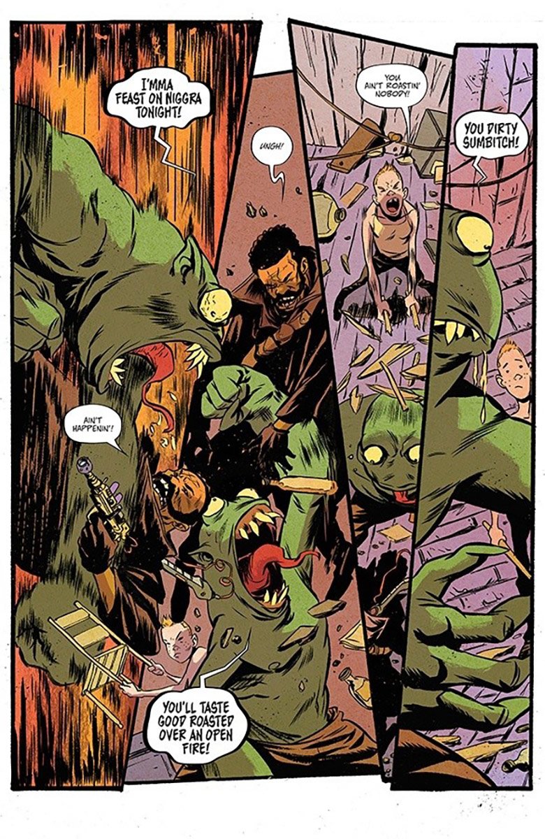Whether it intends to or not, Bitter Root #3 holds up a mirror and lets us see the monster of racial hatred in a non-threatening light. It shows us the ugly creatures that racial hatred evolves a human into and subtly tells us that there are two active responses to it. We can seek to cure it like Ma Etta, and her family. Or we can become an equally horrific monster, as Dr. Sylvester does, and seek retribution.