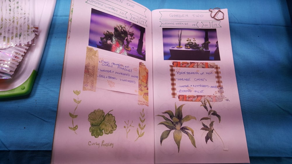 The emotional and mental health benefits are many. It’s been very therapeutic. You get the same mental health benefits from AeroGarden-ing as physical gardening but without the pain. You get rewards from seeing the fruits of your labor. It reduces stress. The lights on the AeroGarden are full-spectrum, so it helps with a variety of mood conditions, especially in the winter. I’ve created another Midori journal to track my gardens, which also has mental health benefits. And it helps lessen my anxiety which is caused by a variety of things, especially the anxiety I get when my C-PTSS is triggered. When triggered, all I need to do is walk into my garden room, sit in my chair, and enjoy the sights, smells and sounds of my gardens to ground me and bring me back to what is happening right now and reaffirm that I’m in a safe place, instead of running a million what-if scenarios.