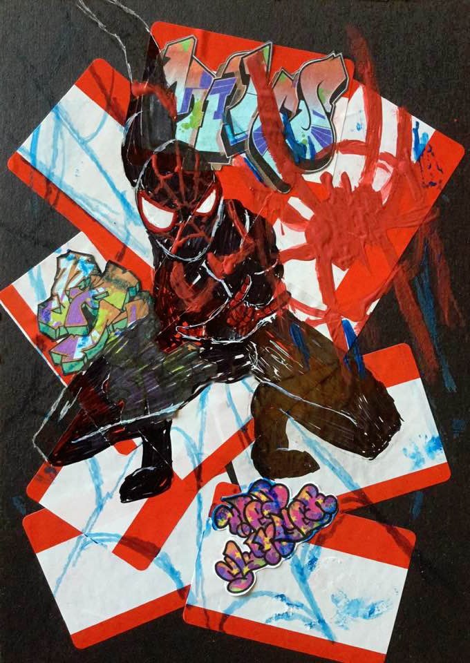 Over this recent holiday season, I would think most people in the circle of geeky families both went to see Spider-Man: Into the Spider-Verse and accumulated a good amount of post-gift-giving fodder. This includes leftover cards and envelopes, cardboard boxes, wrapping tissue, or other paper waste. If you haven’t yet recycled or tossed out these items, try upcycling them as drawing surfaces, just as Miles Morales might do.