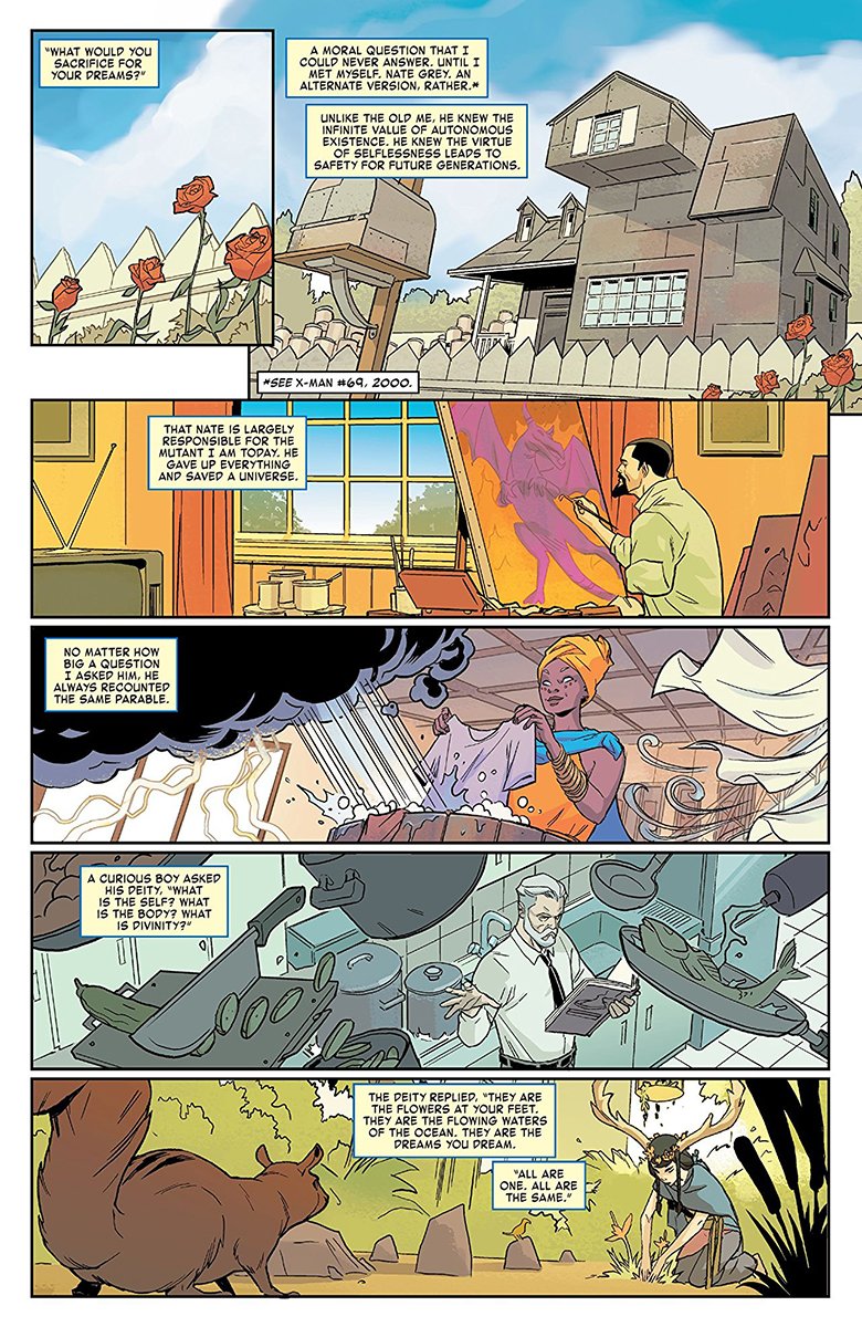 One of the many things that drew me to the X-Men is the exact thing X-Man’s perfect world demonizes. My favorite characters have always been the ones that were the most human. They cared the most, fought the hardest, felt the most, and often were the most damaged. They forged bonds, loved despite challenges, and built relationships. They were human but better. They showed us the best and the worst we could be and fought to better. That is the very thing that X-Man eradicated from this new world. There are no connections, no bonds, no needing of one another. When X-Man build his Utopian world, he eradicated something vital—Humanity.
