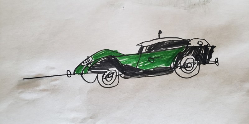 A even went back the next morning and tried a more complicated picture of an old timey car; he’s certainly is getting the hang of things. He says the books are “helpful for drawing.” W says the books are “pretty much fun.” He really enjoyed the books and tried to improve on his cat drawing when his brother was working on the car picture.