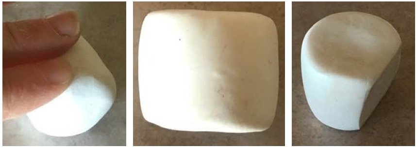 Roll the ball in your hands to make a wide tube. Gently flatten it at each end to make it look like a marshmallow.