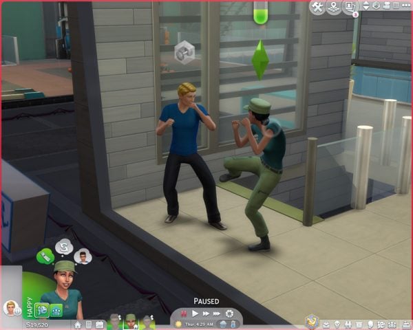 The Military Career is one where you can send your Sim off to work or let them work from home (mostly doing physical activities as work). They do have an easier time getting a Key Card needed in the quest, and their leftover work time might make it easier to investigate the mystery than other careers, but it can be done. Sparing is brought in not as a new skill but as an addition to the Fitness skill. A Sim who levels up in the Military Career also receives a medal for each rank that can be placed in a display box.