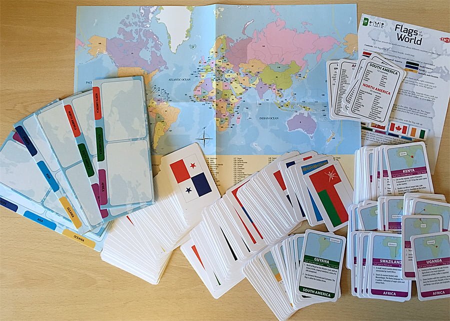 I played the games with my nine-year-old son who is just over the recommended age of eight plus, but he found both games very difficult, simply because he hasn’t learned enough about the world yet. Saying that, my husband and I also found both games difficult. Sure, it’s easy enough to recognize the flags of the United States of America or the United Kingdom, but would you honestly be able to identify the flags of Micronesia, Liechtenstein, Armenia, or Burundi at a glance? Me neither. Of course, this is exactly what the game is here to teach, and with regular play, there’s absolutely no doubt your knowledge will improve. You’ll probably just find it frustrating to begin with.