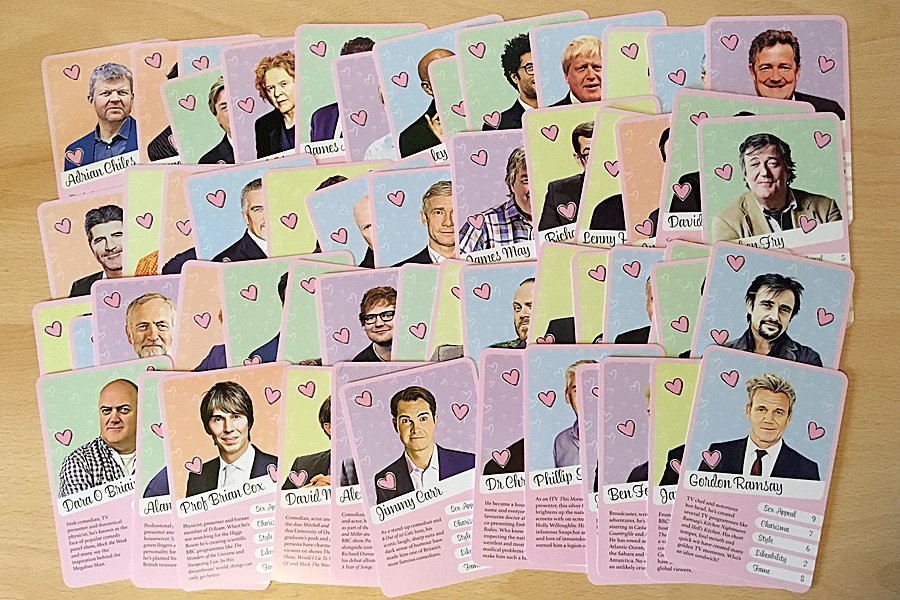 The concept behind Weird Crushes: British Hunks is incredibly simple, in fact, you have almost certainly played it before because this is a variant of Top Trumps.