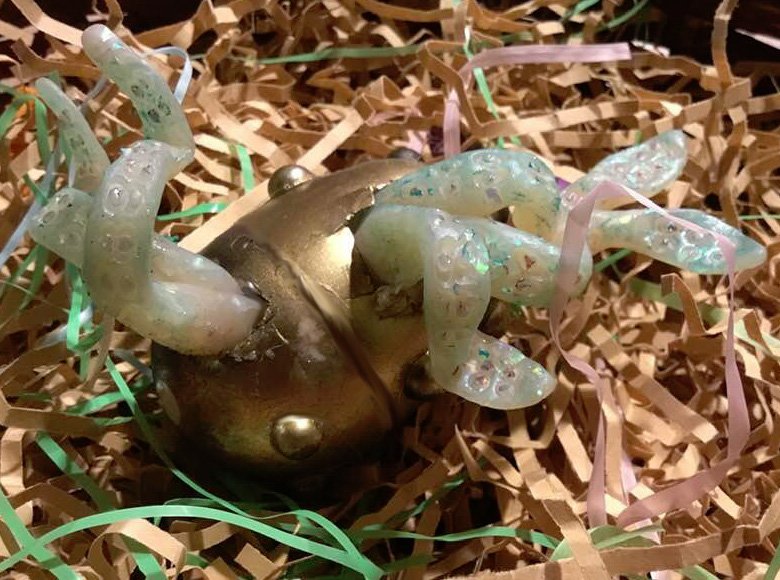 Make tentacles by rolling four to six little tubes and taper them off at the end. Use the small round tip of a chopstick or pen to make the “suckers,” and have them come pouring out of one or more holes.