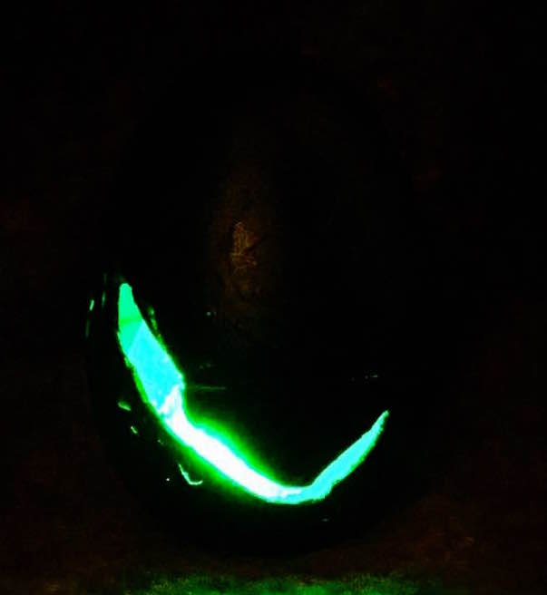 If you don’t want to use polymer, an Aliens-inspired egg can be made by cutting the opening on the egg a little more elongated and painting the egg solid black. Place a small green glow stick or light inside of it to resemble the famous movie poster.