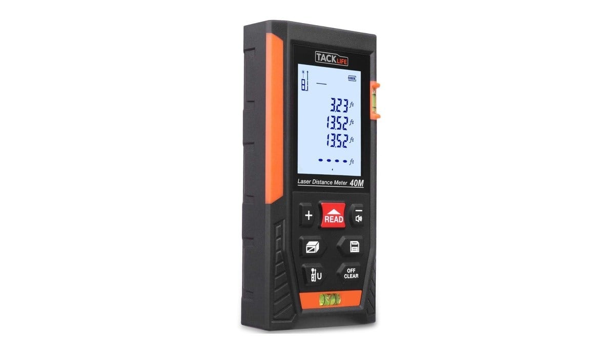 Tacklife HD40 Classic Laser Measure 131Ft M/In/Ft Mute Laser Distance Meter with 2 Bubble Levels, Backlit LCD and Pythagorean Mode, Measure Distance, Area and Volume – Carry Pouch and Battery Included: