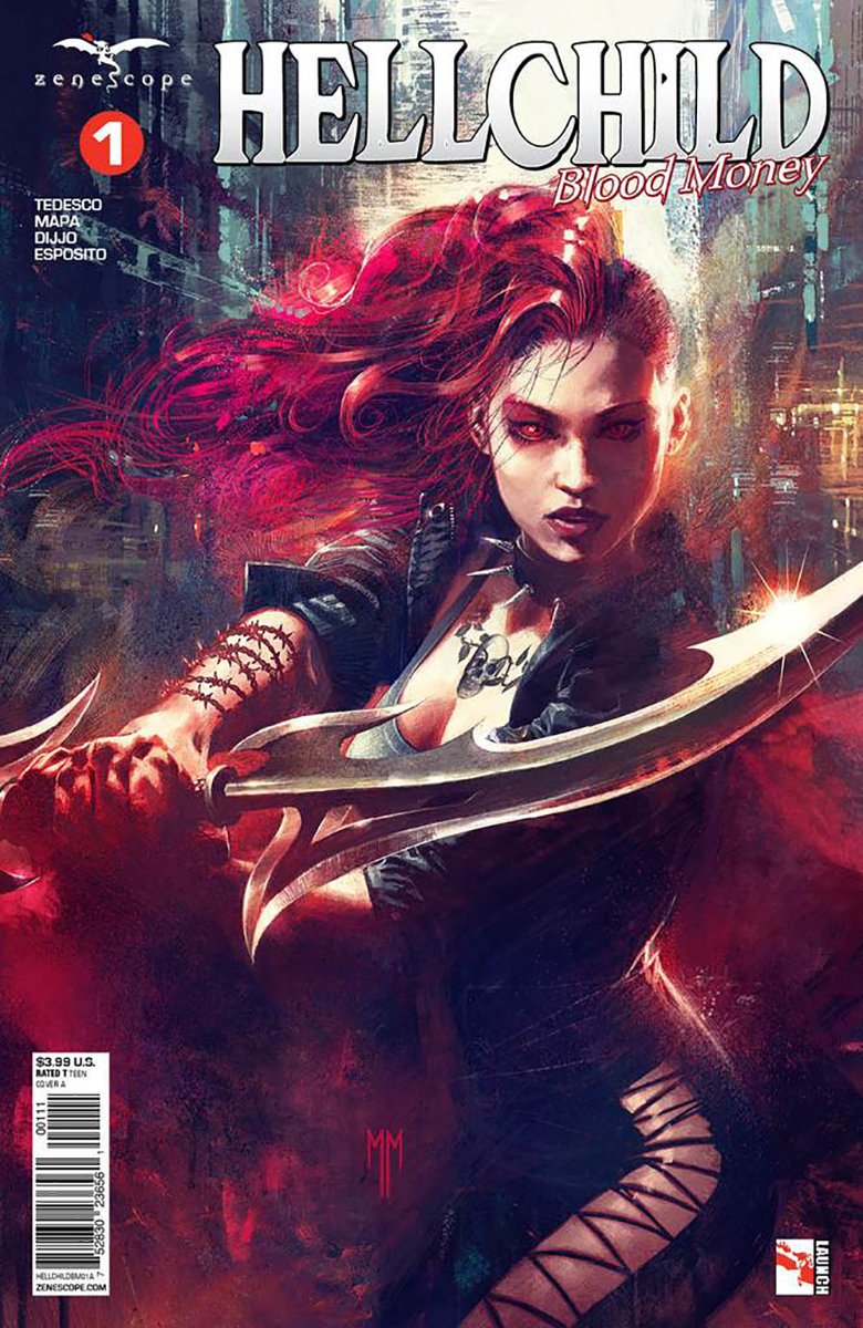 HellChild: Blood Money #1 is the first of a five-issue series published by Zenescope and set in the expansive Grimm Universe. If you’re not familiar with the name Zenescope, the first thing you need to know is that the comics they publish are not for children or those with delicate sensitivities. Generally, people can tell by the covers. The second thing you probably should know about them is they are not erotica despite the over-the-top super sexy covers. That mega-dose of sexiness ends at the cover. The comics otherwise are as normal as any horror fantasy comic and in some cases better than most. The stories are generally darker edgy takes on literary classics or vivid re-imaginings of horror and fantasy characters.