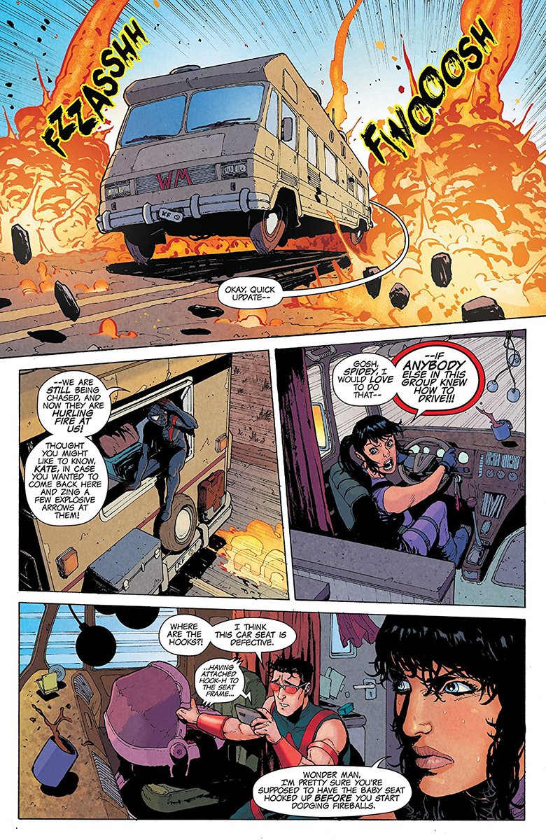 The McElroys play up the new kids origins with a bit of tongue in cheek humor. There’s some goofiness and I’m not sure how to feel about capable characters like Balder, Miles Morales, Wonder Man and Kate Bishop acting mildly moronic at different points. But when a baby is involved that can happen. Don’t take my word for it. Instead, spend a couple of hours with an infant around an otherwise mature adult.