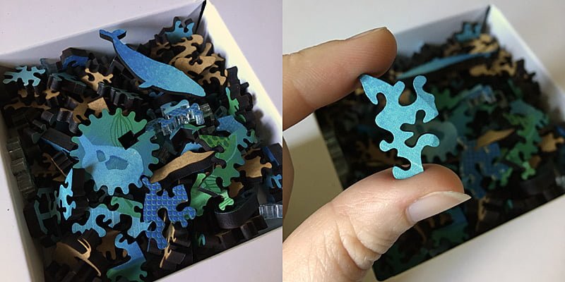 This is where the included Picker Pen will come in very useful. Because the pieces are laser cut and very intricate, getting a middle piece out from the puzzle is incredibly difficult, even for those of us with small fingers and long nails. The Picker Pen is slightly sticky and allows you to easily lift individual pieces out. You can see a gif of the pen being demonstrated on the project’s Kickstarter page.
