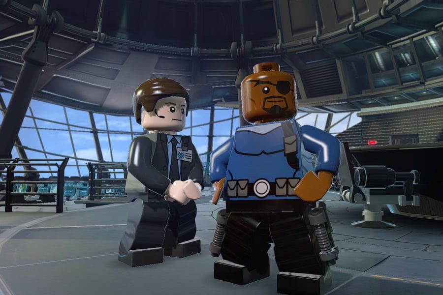 There’s a lot of slapstick comedy to find too. Coulson’s Destroyer gun launches a boxing glove on a spring at Loki, a rocket-powered pig roams around Stark’s lab, and Fury can always be seen drinking what appear to be pink milkshakes – a nod to Samuel L. Jackson’s character in Pulp Fiction perhaps? The comedy continues in the sound effects too. One of my favorite moments across the entire LEGO Marvel Collection came while I explored the Helicarrier hub in LEGO Marvel’s Avengers only to hear the following over the ship’s tannoy: