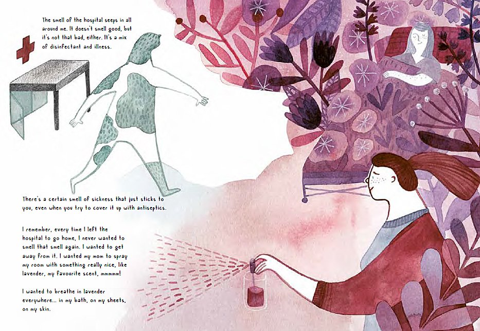 A Story About Cancer (With a Happy Ending) is a short YA story by India Desjardians, illustrated by Marianne Ferrer, and translated from the original French by Solange Duellet. The 96-page book follows an unnamed 15-year-old as she makes her way through the hospital on the way to find out how much time she has left to live. As she walks, she reminisces about the previous five years since her leukemia diagnosis.