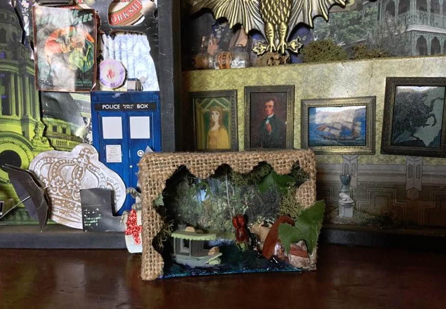 Now, we just need a place to display it. One of the nice things about shadowboxes is they can work either as stand-up items or on a wall. I recommend putting it in a place with heavy traffic, so visitors will stop and take a look. I’ve also used shadowbox ideas to upcycle used coloring pages or for creepy Halloween décor.