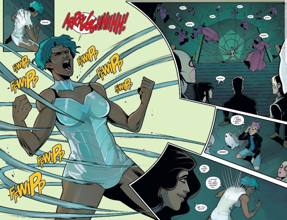 The last two issues of West Coast Avengers wrapped up a lot of storylines way too fast. The half a dozen pages that showed Ramone gaining the powers of Alloy should have been an entire arc. The reveal of Kate’s mom, the knowledge that she’s back in order to take down Kate’s dad, the potential of her being a half-vampire… they made the storytelling part of these two issues really suck. The team was there, the banter and intertwined relationships were there, but the story wasn’t. It couldn’t be because it was cut so very short.