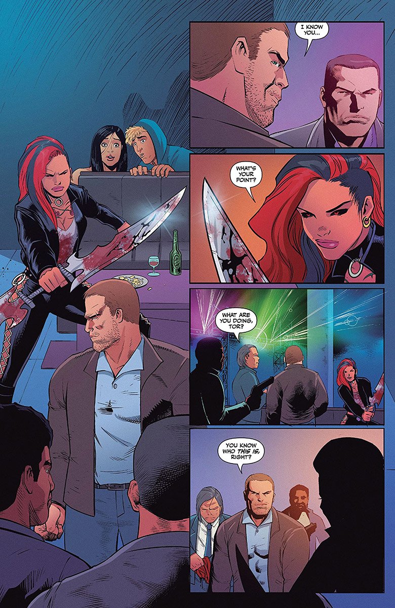 In Hellchild: Blood Money #1, Angelica agreed to take on what seemed to be a babysitting job, looking after Jake, the entitled brat child of a successful L.A. businessman. Jake threw a little house party complete with drugs and prostitution that resulted in the death of two women. Both girls worked for a man named Tor, who has a penchant for extreme violence and employs it enthusiastically when making a point.