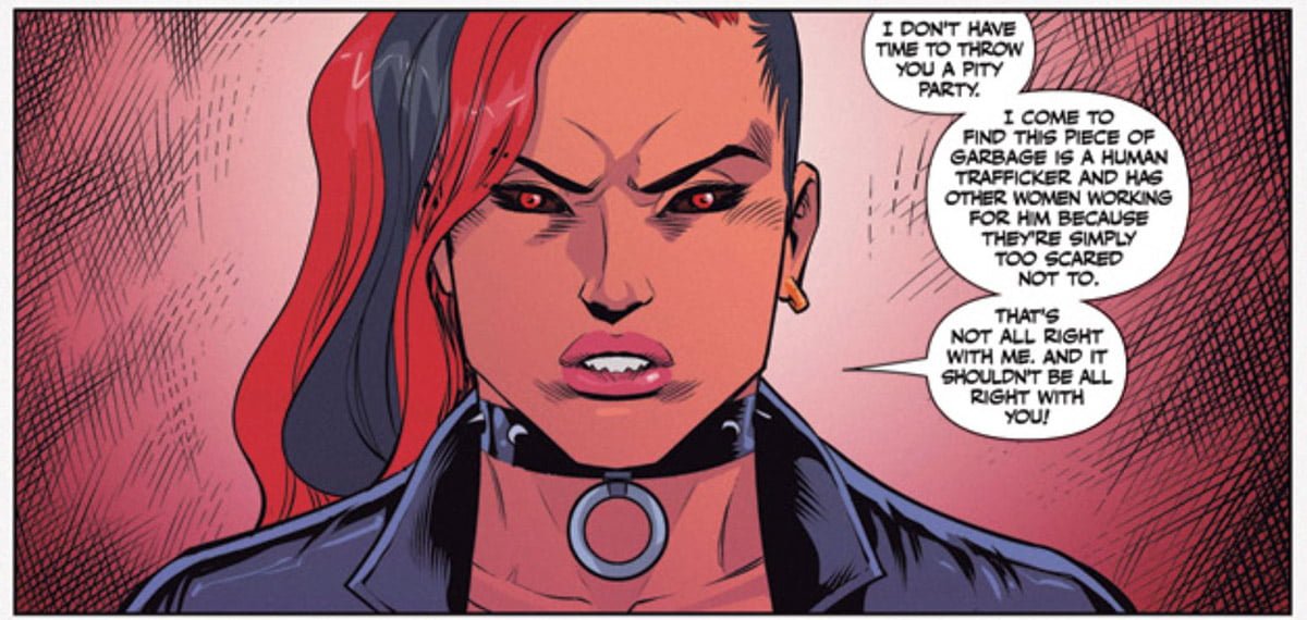 Another thing I like is that Tedesco takes on a real-world topic in this mini-series that gets overlooked too often in our society. Human trafficking and forced prostitution are serious and horrific realities. Tedesco treats them as the travesty they are without wasting a lot of time on social commentary. Angelica gets right to the point on it.
