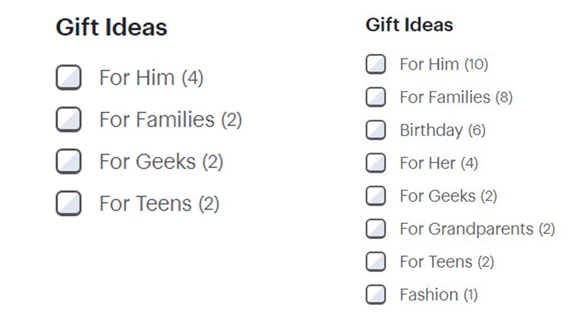 In short, go back to the drawing board and consider revisiting the “Gift” filter or, better yet, remove it entirely. You are only excluding part of your customer base because of your outdated assumptions of your customer demographic.