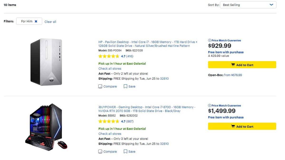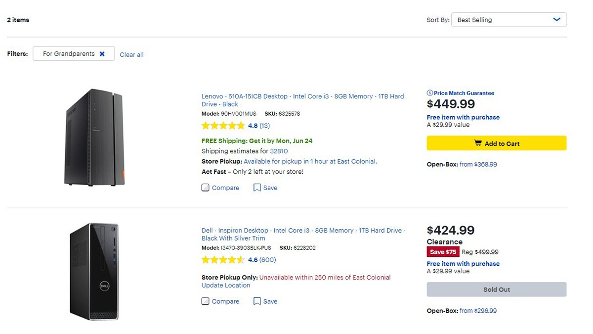 In an effort to see if this was a site-wide thing, I went to the Desktops & All-in-One Computers which is under the Computers and Tablets section. I found the “Gift” options were more broken down in this section including the hilarious Fashion category followed by For Her and For Grandparents, among others. I’ll be honest, I half expected the For Her category to include pink sparkly computer systems.