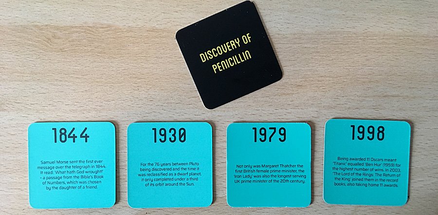 My family and I really enjoyed playing Placing the Past and I found that I slightly preferred it to the similar game Timeline which I have previously reviewed on the site. Making multiple short timelines which are then cleared and replaced made the game more fun than working toward one enormous timeline, and also made it more practical in terms of space on the table. We did also discover that we could easily mix and match Timeline cards with Placing the Past cards or play either game with cards from the other, which has hugely increased our playing options.