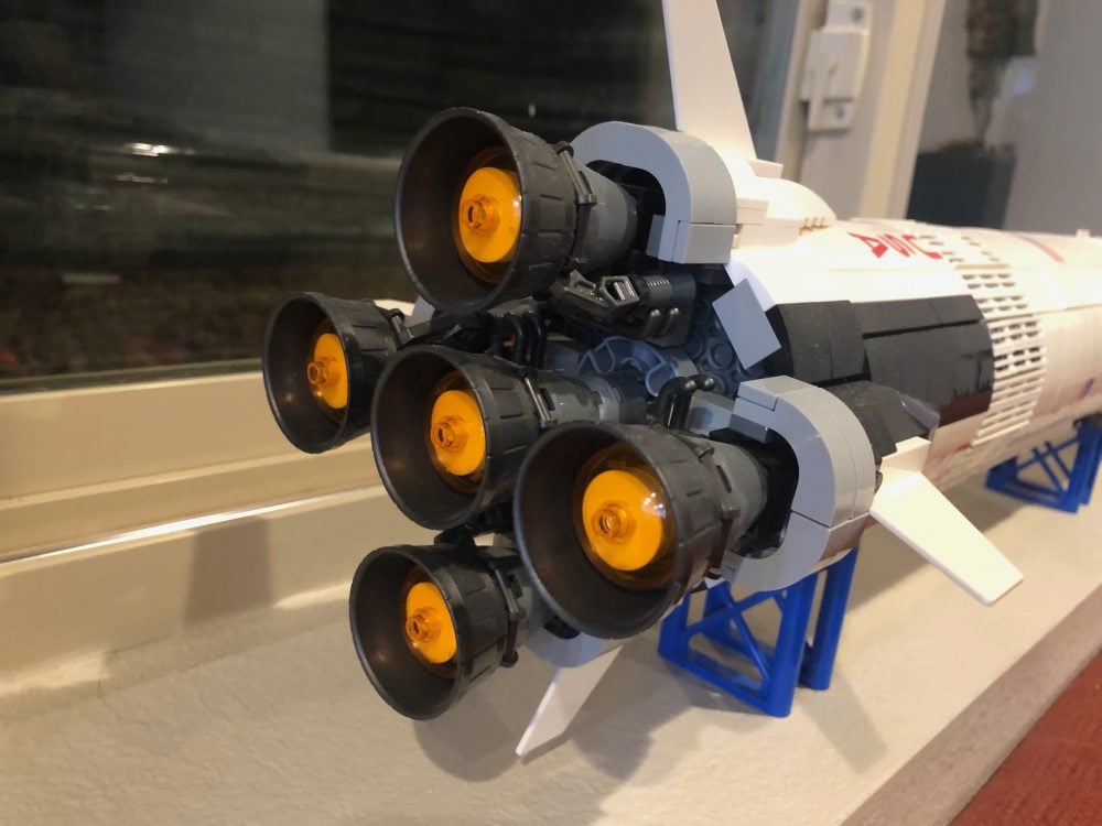 Speaking of horizontal, last year, around Fathers Day, my husband got the Saturn V LEGO kit, all 1900 glorious pieces of it. He built it with our teen sons, and all three of them will tell you that it has incredible detail, and, at just over 3′ tall upon completion, is quite fragile. It’s currently on display, in the horizontal, in our basement, along with his brand new Lunar Lander LEGO nearby.