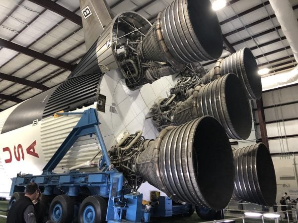 My wife and I saw the KSC’s Saturn V this past April. I was 13-yrs-old, and absolutely enthralled with manned space exploration, when Apollo 11 landed in the moon. So finally visiting the KSC, standing beneath its wonderfully suspended moon rocket, and simply being within sight of Pad 39-A (where SpaceX’s Falcon Heavy stood poised to lift off that very evening!) was a like a religious “pilgrimage” for me. Furthermore, after inspecting the mammoth Saturn V’s precise design and intricate plumbing up close, I am even more in awe of the visionary people who conceived and built it.