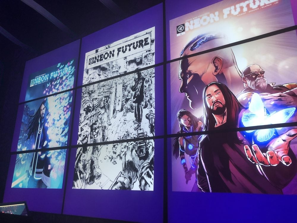 After the panel, I met the other GeekMom writers nearby to celebrate a relatively new comic book company, Impact Theory, which launched their first title, Steve Aoki’s Neon Future, this past spring. We had a chance to hear CEO Tom Bilyeu tell us about his motivation for how they planned to turn the comic industry on its head. I had a very nice time talking to artists, including one of the writers, who described a television-writer-style group approach to writing these stories.