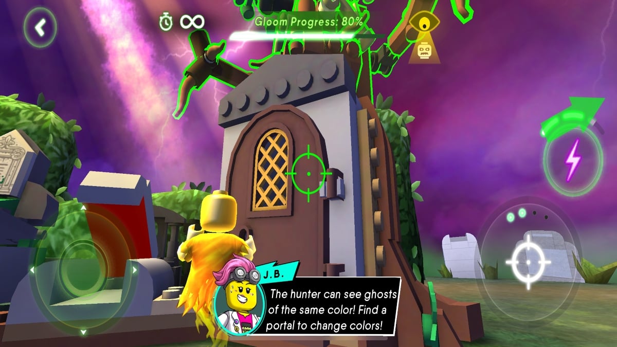 Playing the “game” side of the Hidden Side sets is fairly basic at the moment. Kids build the set, turn on the app, and then go on little quests that require moving parts of the set to show the appropriately colored brick. Then they need to “collect” (or shoot) ghosts. Unlike the other games that incorporate AR, kids need to look at both the screen and the set, meaning that they bring together the digital and physical world.