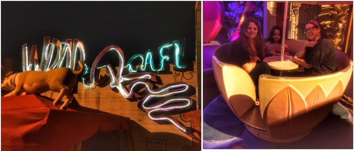 Our original plans were to hit a new carnival-themed burger place, called Wrap and Roll Cafe, that feels like walking through a retro amusement area with vintage ride vehicles, movie props, and dining booths made from roller coaster cars.