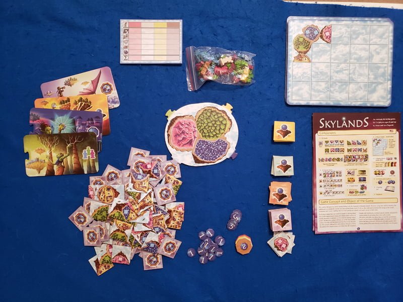 There can be a challenge in finding games designed for grown-ups that kids can also play. Our older child, A, is approaching nine and loves to play with the grown-ups so it’s nice when we can find a game he can play with us that we also might be more inclined to play with our friends. Luckily, there are games like Skylands from Queen Games that do manage to fit those requirements. I was lucky enough to receive a copy in exchange for a review.