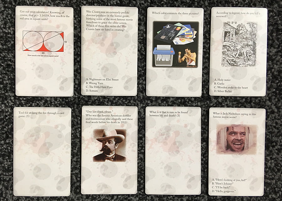 As for the puzzles, while many were familiar and the use of copyrighted material in the game questionable (such as a card with a movie still taken from The Shining), there were actually some good puzzles here. I especially liked the math questions, which I often challenged my nine-year-old to solve away from the game as a whole and there were several that had me stumped, even after resorting to using hints. One thing I really didn’t like was the decision to include trivia questions related to other pop culture properties as puzzles. First, these are not puzzles in the style and spirit of the original video game, and second, I found these questions immediately pulled me out of the universe the game was trying to immerse me in. Many of the intellectual properties the cards referred to hadn’t even been released when The 7th Guest was first released, let alone during the era in which the story is set. Finally, I would have liked to see a separate stack of trickier puzzles just for The Little Room at the Top instead of these puzzles simply being drawn from the regular stack.