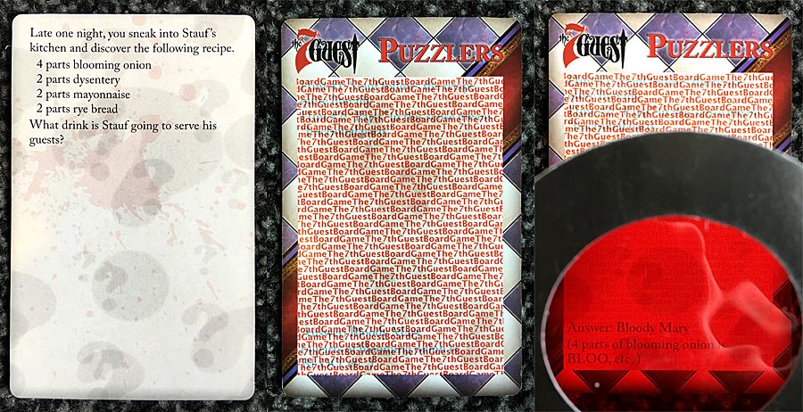 Whenever you reach one of your destinations, you automatically get to solve a Puzzle. Another player will read out the question and show the card to everyone (many of the puzzles have visual elements) as well as announcing how many (if any) hints are available.