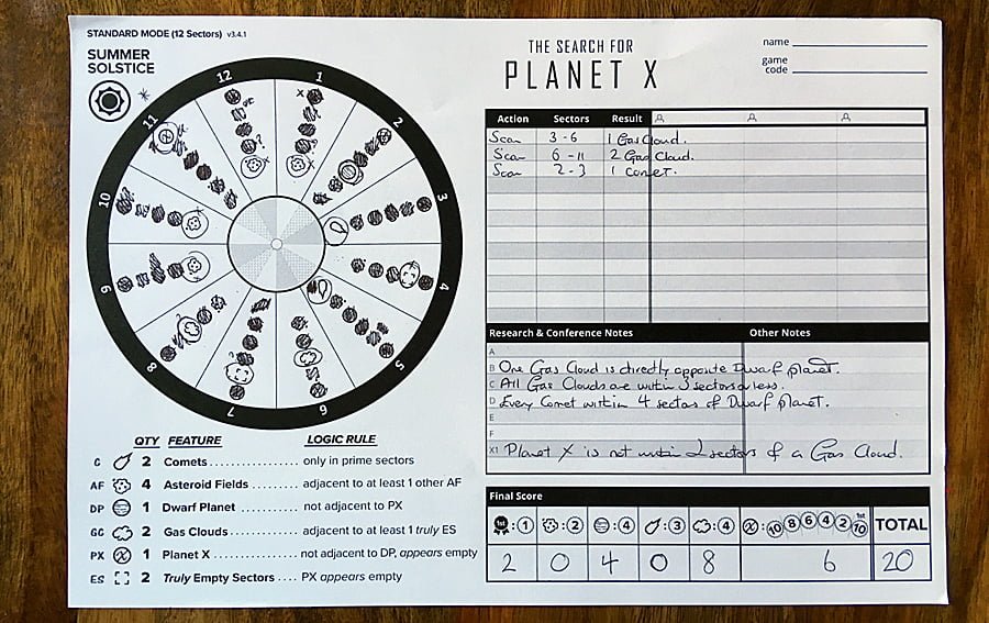 - If you are correct, you announce that you located Planet X but NOT where you located it. This then triggers the end of the game.