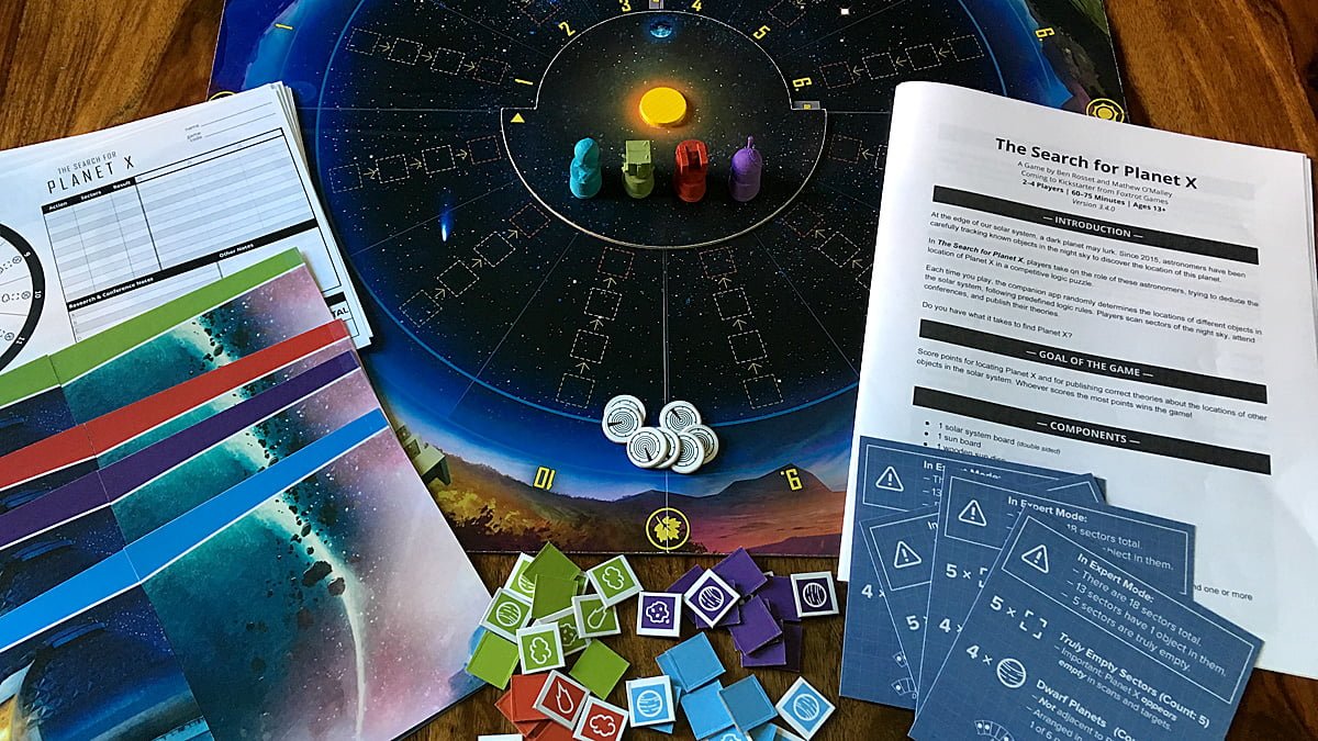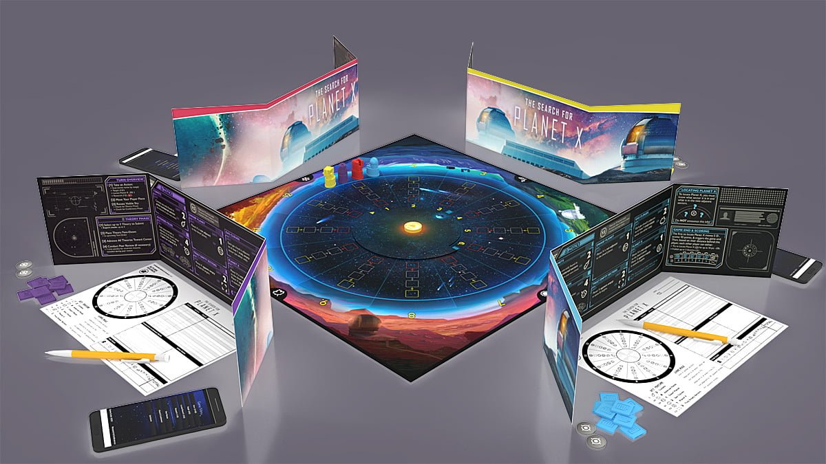 The Search for Planet X is a deduction-style board game currently funding on Kickstarter in which you play as a team of scientists on the hunt for the fabled Planet X, lurking somewhere on the edge of our solar system. Players will conduct research, publish theories, attend conferences, and use the information they learn in a race to correctly identify where Planet X is hiding in the night sky and score the most points.