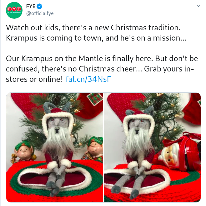 And in line with the timeliness of mall-based stores in 2019, the press release for Krampus on the Mantle describes it as “a licensed stuffed figure developed in coordination with Legendary Entertainment, the producers of the 2018 film Krampus, from which it was adapted.”