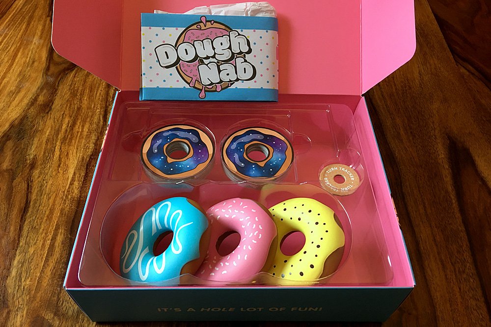 The components of Dough Nab are some of the most fun I have ever come across. Almost everything is donut-shaped, from the cards to the turn tracker, and the fake donuts themselves are brilliant—your kids will almost certainly end up stealing them for their toy kitchen.