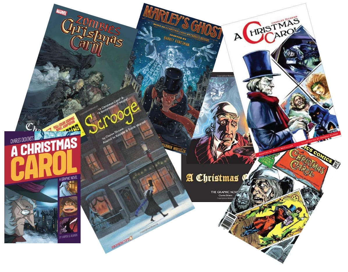 2. In addition to the countless versions of the book itself, several graphic novel versions of A Christmas Carol are available, including a Marvel Zombie’s Christmas Carol, DC’s Batman Noel, more than one Classics Illustrated version, and a young reader’s version by Harvey Kurtzman, Marley’s Ghost, that was the 2018 Eisner Award winner for Best Digital Comic.